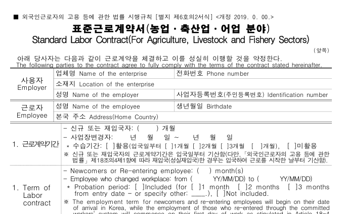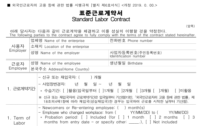 - 네, 외국인 근로자에게도 근로계약서를 작성하고 교부해야 하며, 해당 근로자에게 맞는 양식을 사용해야 합니다.
