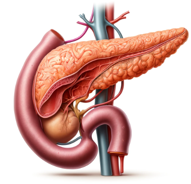췌장은 위의 뒤쪽, 복부 깊숙한 곳에 위치한 소화 및 내분비 기관입니다. 이곳에서 분비되는 인슐린은 혈액 내 포도당이 세포로 흡수되도록 돕는 필수 호르몬입니다.