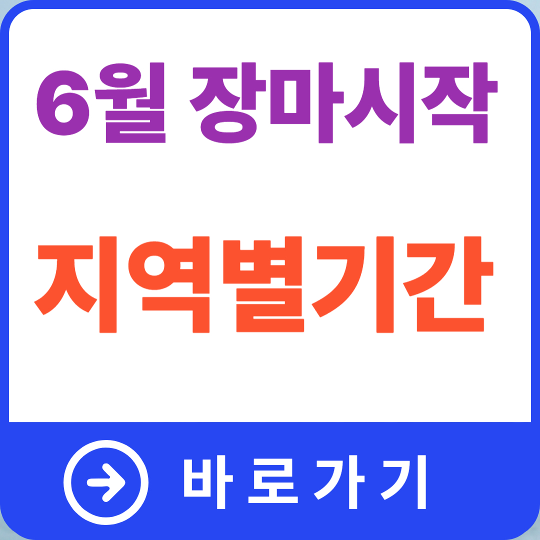- 제주도 장마철은 6월 중후반~후반 집중, **남부지장(전남·경남)**도 집중호우 가능성, 중부지방 장마기간은 지속적 비와 도시 침수우려