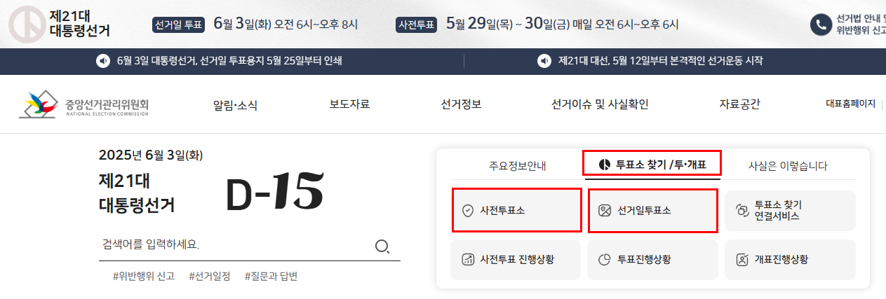- 사전투표: 2025년 5월 29일(목) ~ 5월 30일(금), 오전 6시 ~ 오후 6시
